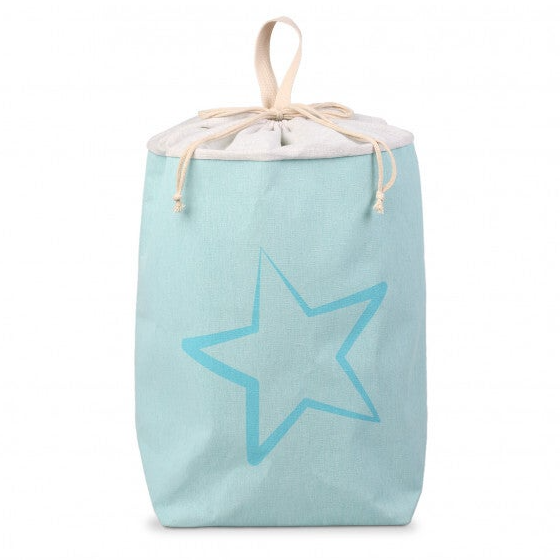 Deze decoratieve zak is ideaal om speelgoed en knuffels in op te bergen! De zak is lichtblauw van kleur en heeft een print van een ster op de voorzijde.