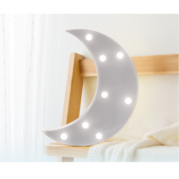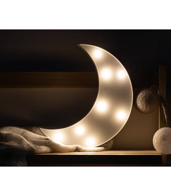 Grijze maan decoratie lampje met led verlichting. Leuke decoratie lamp om de baby- of kinderkamer een stukje gezelliger te maken!