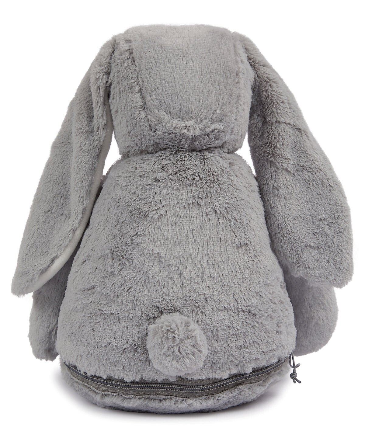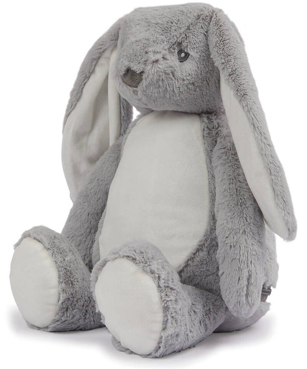 Super zacht, grijs pluche knuffelkonijn met lange oren.