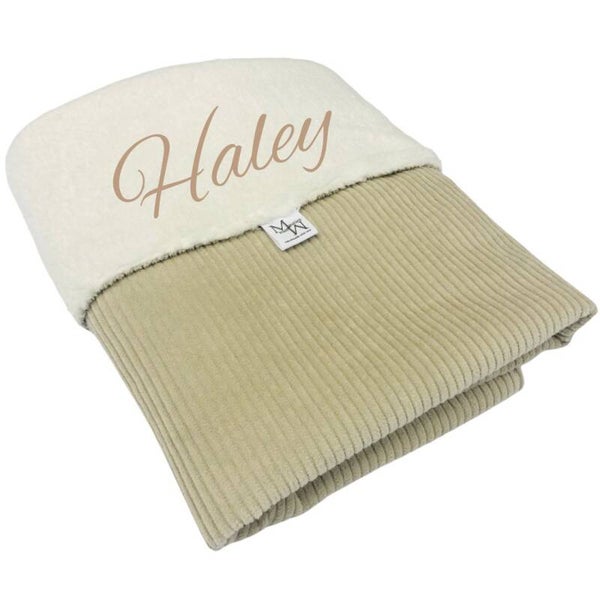 Deze mooie deken van Mauties Mama is dubbelzijdig met aan de ene zijde ribstof en aan de andere zijde teddy. Het dekentje kan worden gepersonaliseerd met naam!