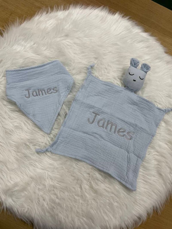 Kraamcadeau setjes met naam geborduurd.
