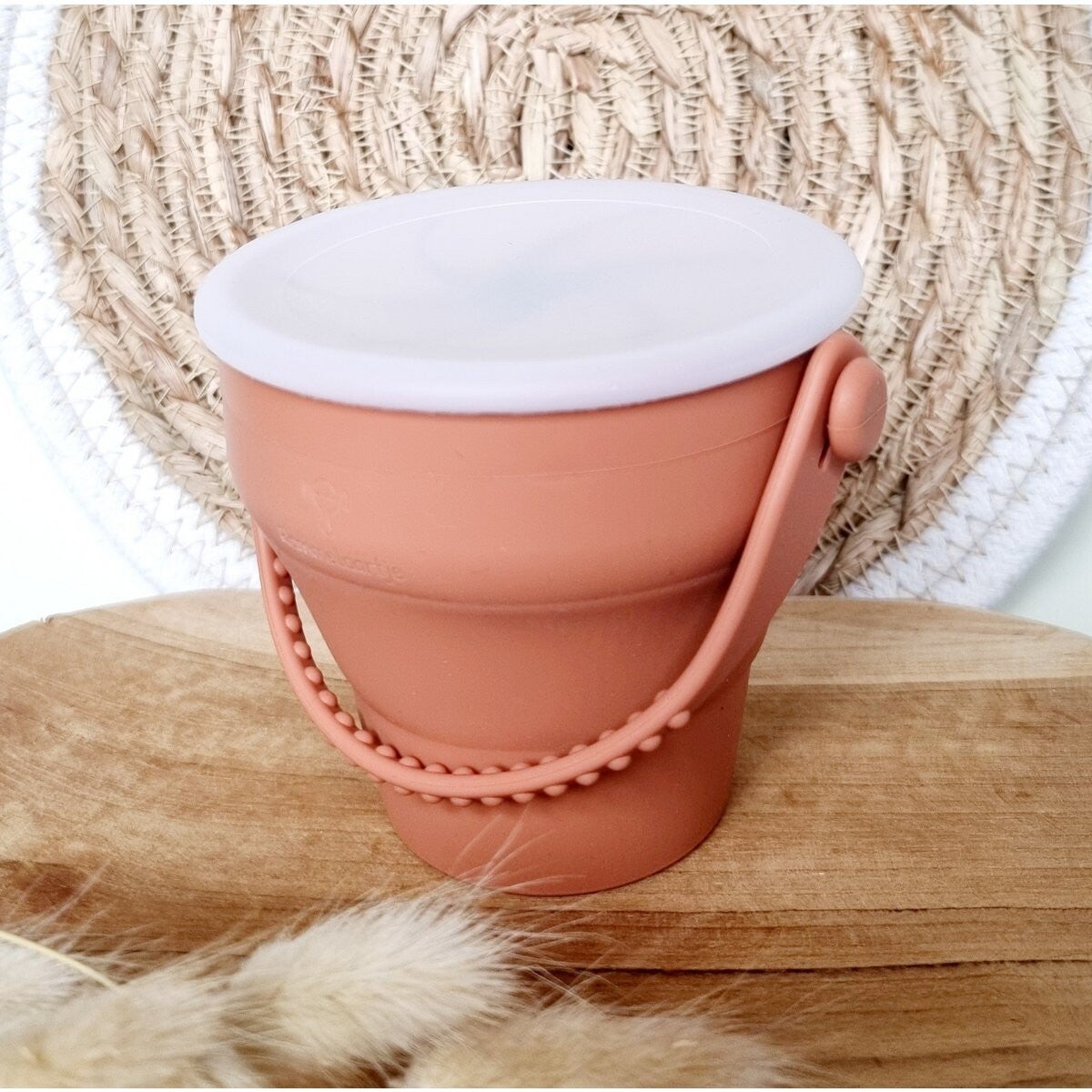 Flexibele siliconen snackcup met deksel van Rammelaartje. Deze cup is opvouwbaar en daarom super gemakkelijk mee te nemen!
