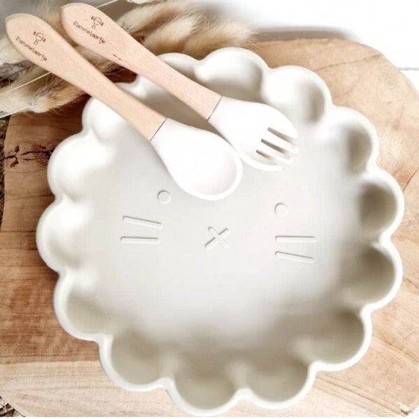Siliconen bordje leeuw met vork en lepel beige