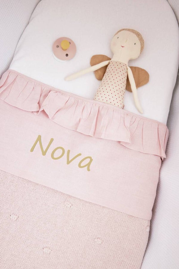 Ledikant laken ruffle soft pink 100 x 150 cm