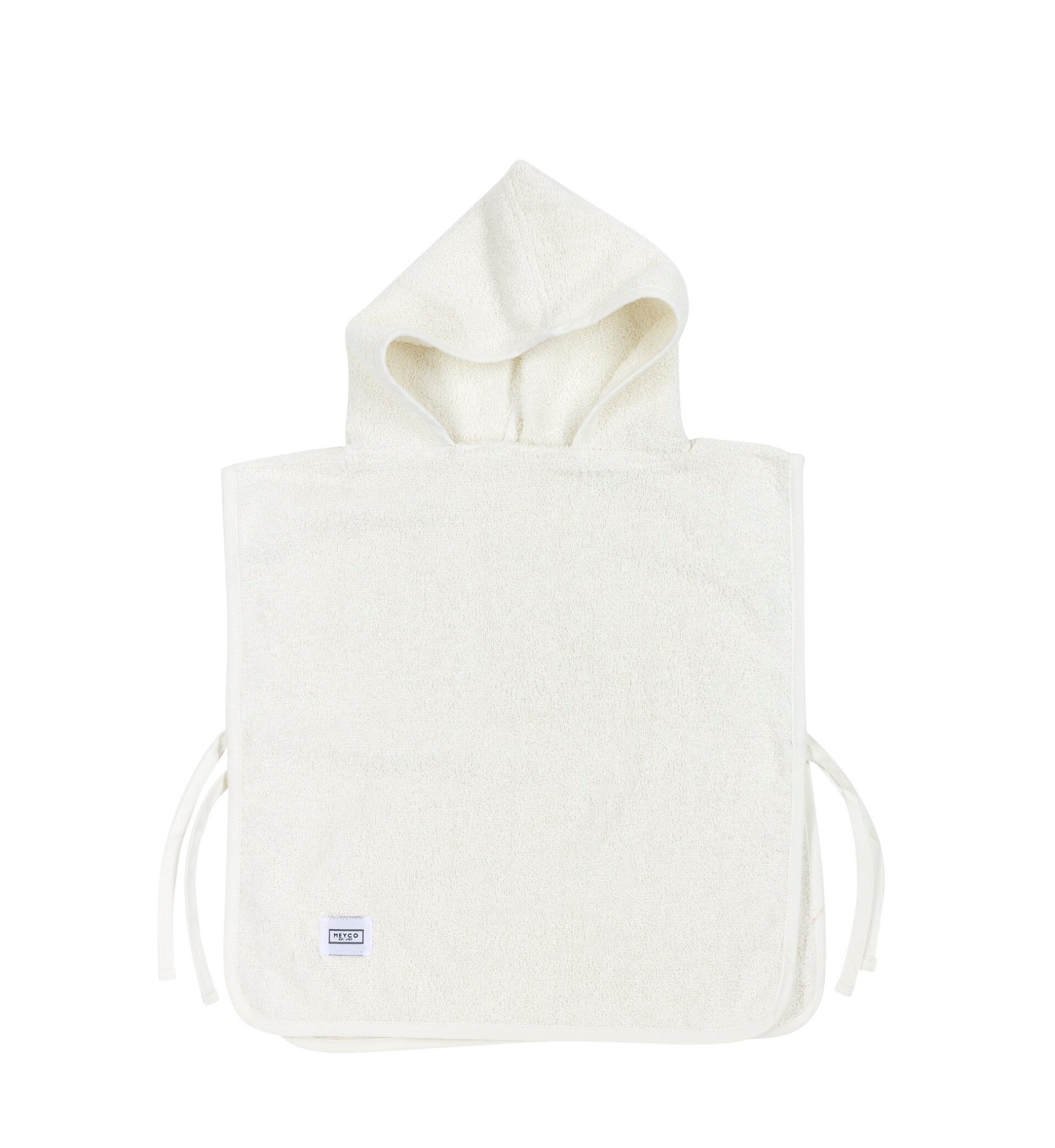 Badstof poncho in gebroken wit met capuchon van Meyco baby. Ideaal voor na het zwemmen, douchen of badderen.