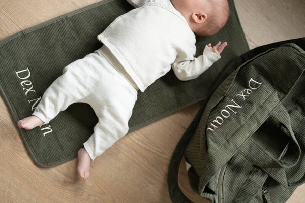 Beige ribstof luiertas met bijpassend verschoon matje van Kidzroom uit de Care Tenderness collectie.