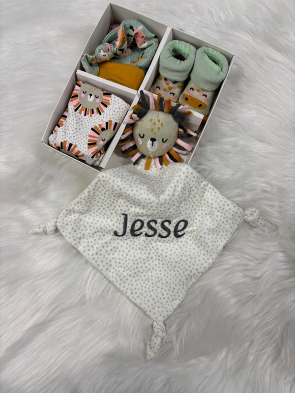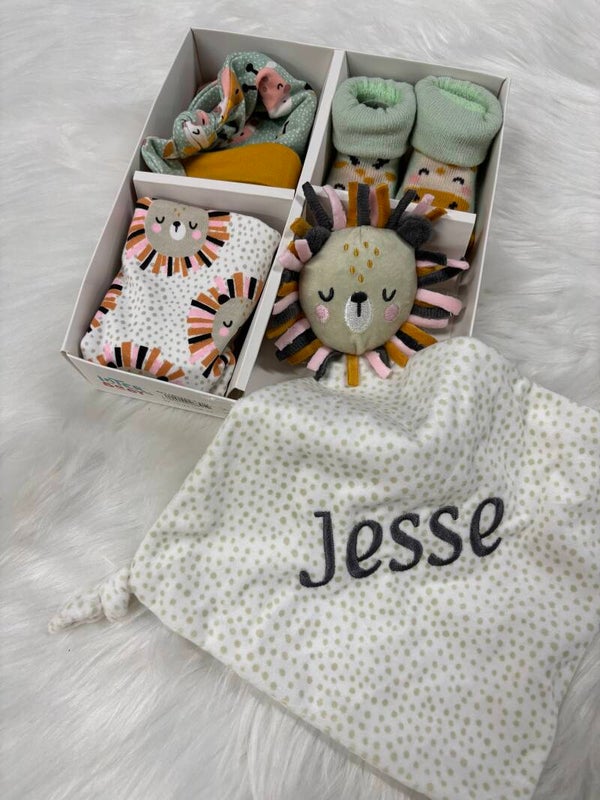 Op zoek naar een origineel en persoonlijk kraamcadeau? Ontdek ons schattige kraamcadeau setje met leeuwenthema! Dit setje bevat alles wat een kleintje nodig heeft voor een warm welkom: