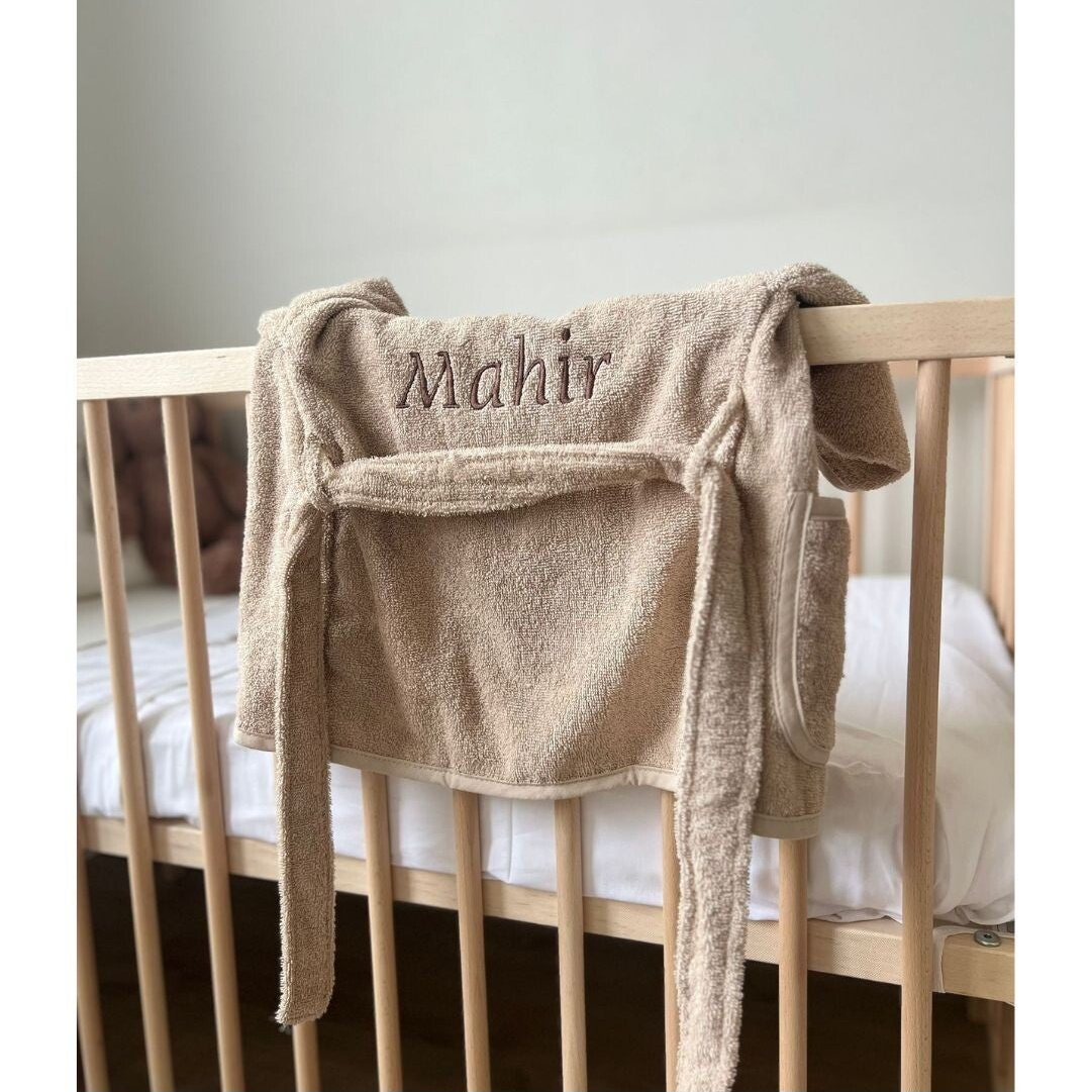 Wat dit badjasje écht bijzonder maakt, is de mogelijkheid om het te personaliseren met de naam van het kindje. Laat de naam borduren op de borst of op de rug, en creëer zo een uniek cadeau dat niet alleen mooi is, maar ook een blijvende herinnering vormt. Perfect als kraamcadeau of voor een eerste verjaardag!