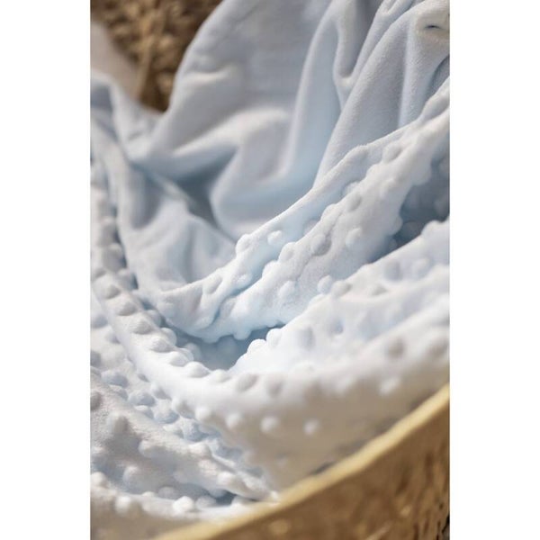 Heerlijk zachte, lichtblauwe bubbel deken voor in de wieg of box.