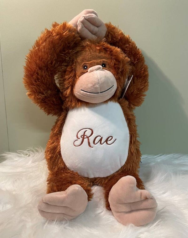 De knuffel kan worden gepersonaliseerd met naam eventueel geboortedatum. Zie de opties bij het artikel.