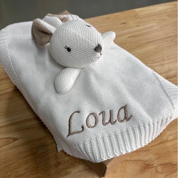 Extra bijzonder: laat de naam van je kindje borduren op het knuffeldoekje – een uniek en persoonlijk kraamcadeau!