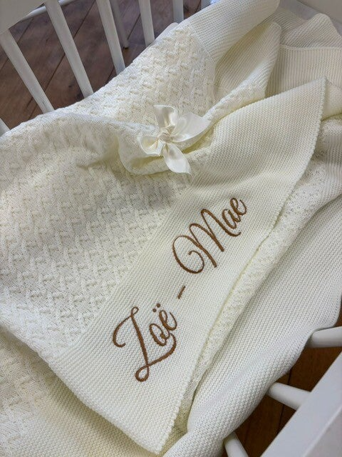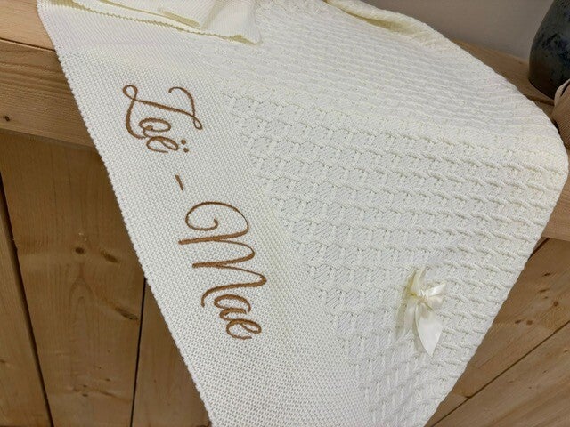 Laat de deken borduren met naam voor een persoonlijk tintje. Heerlijk zacht voor in de wieg, kinderwagen of maxicosi.