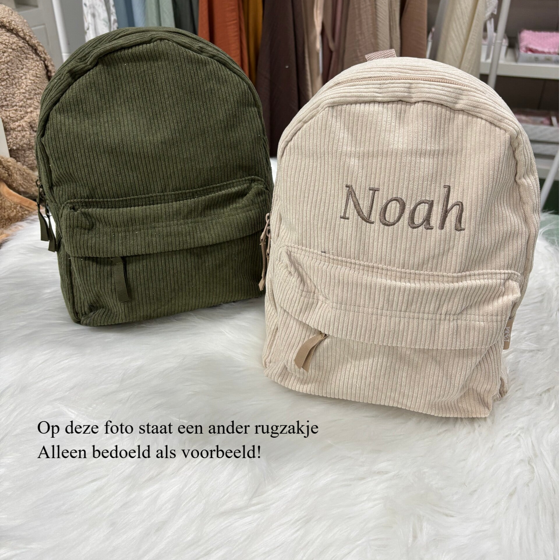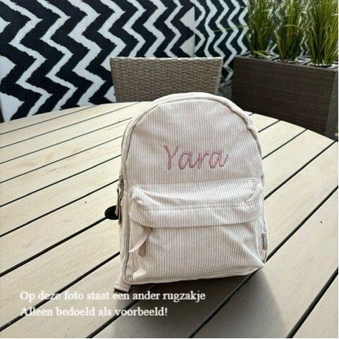 Corduroy rib rugzak met naam geborduurd.