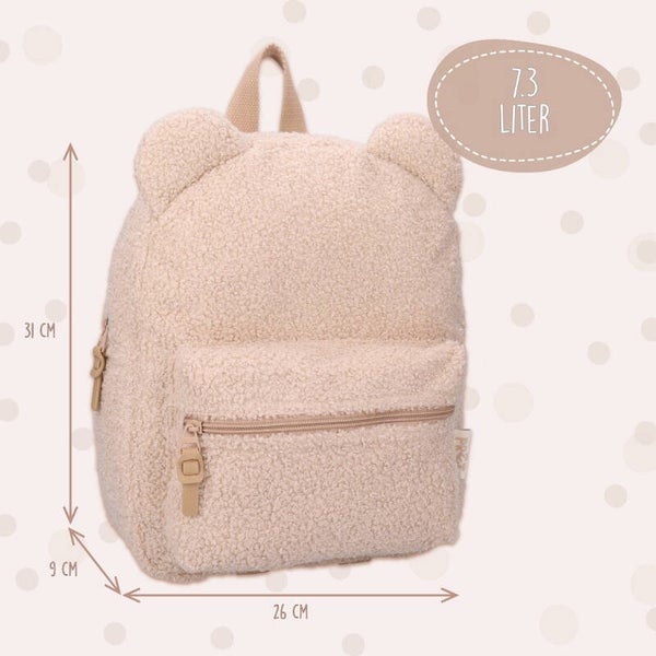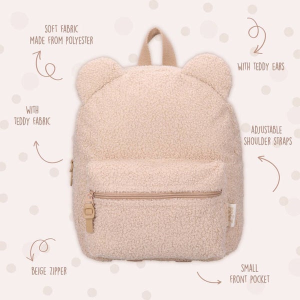 Gemaakt van een heerlijk zachte teddystof, is dit rugzakje niet alleen stijlvol door de beren oortjes aan de bovenzijde maar ook comfortabel in gebruik.