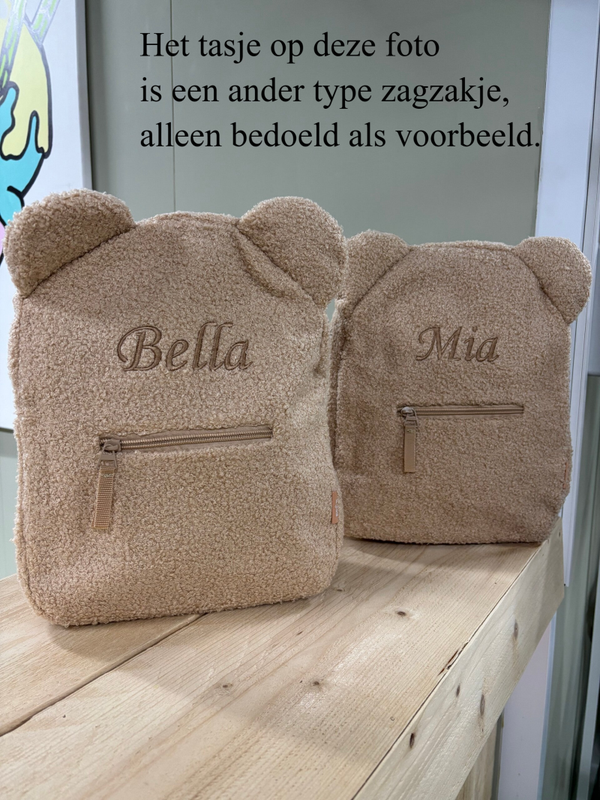 Teddystof rugzak beren oortjes met naam geborduurd.