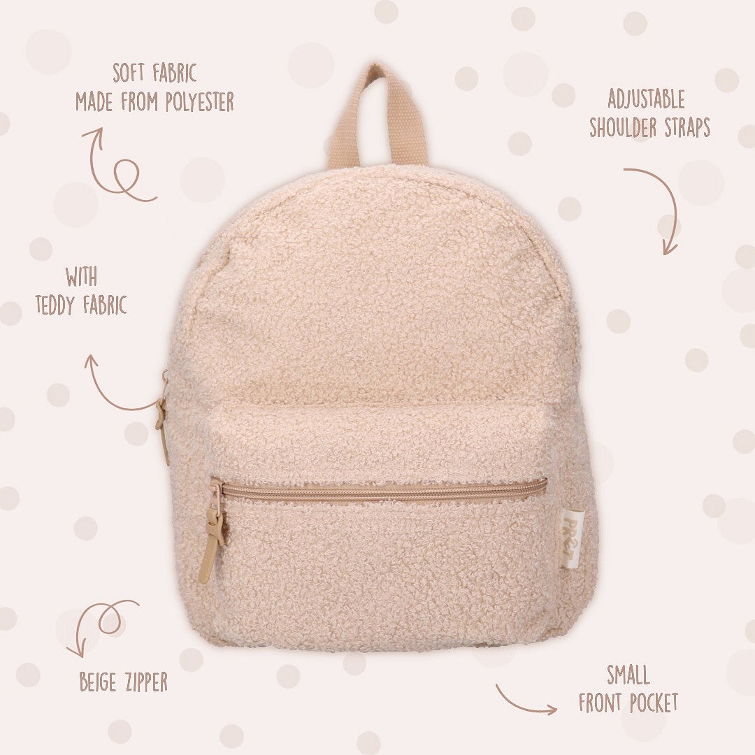 Teddy rugzak beige - met naam geborduurd